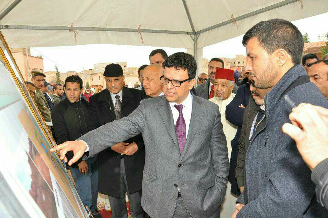 عامل إقليم الرحامنة رفقة القاسمي المدير الإقليمي للشباب و الرياضة يعطيان إنطلاقة بناء مسبح بإبن جرير.