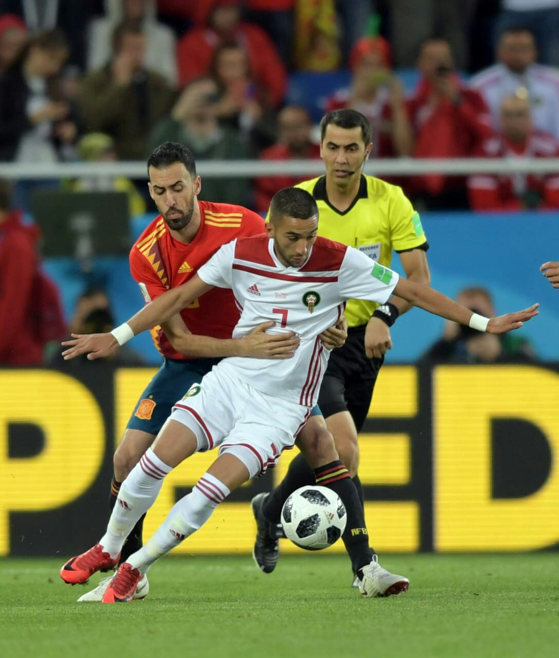 Le Maroc a faillit créer la surprise après avoir tenue en échec une équipe d’Espagne qui voulait sauver sa peau devant un adversaire qui n’avait rien à perdre en égalisant dans le temps additionnel (2-2). Les Espagnols conservent quand même la première place du groupe B et filent en huitièmes de finale. Où ils seront opposés à la Russie. A la quatorzième minute Khalid Boutayeb saisie une erreur entre Inesta et Ramos et part seul au but (1-0), par contre les espagnoles égalisent par le billet de Isco à la 19 émé minute. Apres la pose les lions de l’atlas fournissent une opposition sans précédant, a la 55 eme minute Amarabat d’un tir cadré du pied droit à l’angle de la surface de réparation vient s’écraser sur la barre transversale du portier espagnol De Gea, à la 81eme, le corner de Fayçal Fajr au point de pénalty trouve la tête de En-Nesyri qui la met au fond des filets (2-1).
