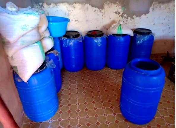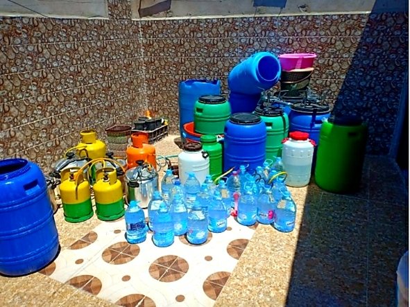 و بناء على معلومات دقيقة توصلت بها الاجهزة الأمنية عن الطريق المشتبه فيه الموقوف ، تم ظبط 4 معامل تقليدية لصنع وتقطير مسكر ماء الحياة في مناطق متفرقة من مدينة العيون وهي في حالة اشتغال.
