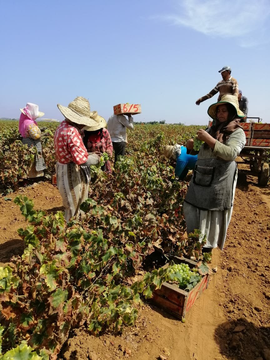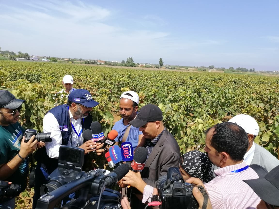 الزيارة الميدانية للضيعات النموذجية لزراعة العنب التي نظمها مركز الاستشارة الفلاحية و المديرية الإقليمية للفلاحة و جمعية رواد لتنمية قطاع العنب وقفو من خلالها على كيفية زراعة هذه المادة الخام التي بدأت تفقد بريقها في ظل الاكراهات التي تواجه الفلاحين طيلة زراعة هذا المنتوج الذي يستغرق 3 سنوات من المتابعة من خلال السقي والأدوية والزبر وإلى غير ذلك من الإهتمام كي نحصل في الأخير على فاكهة مثمرة ذات جودة عالية.