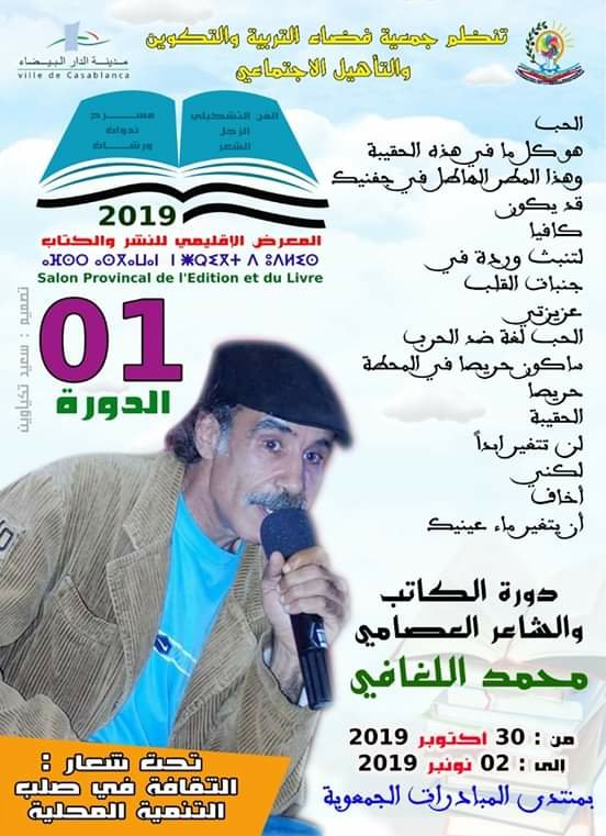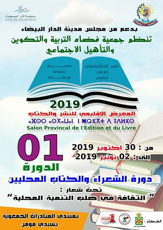 فكرة المعرض الإقليمي للنشر والكتاب في نسخته الأولى دورة إصدارات الكتاب المحليين هي تمرة مشروع تم انجازه من طرف جمعية فضاء للتربية والتكوين لكن الجمعية ارتأت ان يشاركها هذا العرس الثقافي بامتياز كافة الجمعيات المومنية الغيورة على المجال الثقافي بالمنطقة لاسيما أن الدورة الأولى للمعرض ستكرم هامة من الهامات وقلم من الاقلام الراقية والرائعة بسيدي مومن الا وهو الاستاذ ” محمد اللغافي “