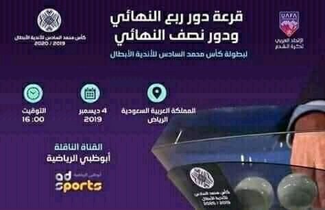 أقيمت اليوم الأربعاء 4 دجنبر بالعاصمة السعودية الرياض قرعة الأدوار النهائية من بطولة كأس الملك محمد السادس للأندية العربية الأبطال، و قد أسفرت هذه القرعة عن مواجهات قوية في الدور ربع النهائي.