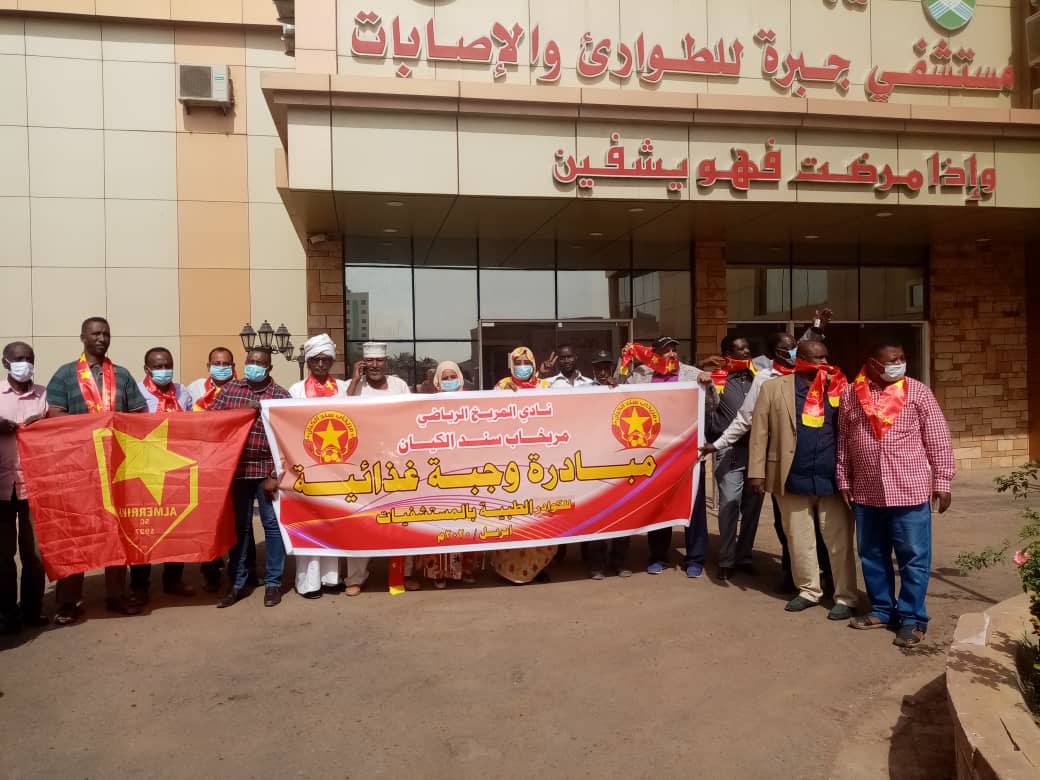 قام أنصار و مشجعي نادي المريخ الرياضي السوداني يوم الأحد 13 أبريل2020 بمبادرة إنسانية تتضمن وجبة غداء في زمن كورونا للأطقم الطبية و كل العاملين في عدة مستشفيات الحجر الصحفي في ولاية الخرطوم بالسودان.