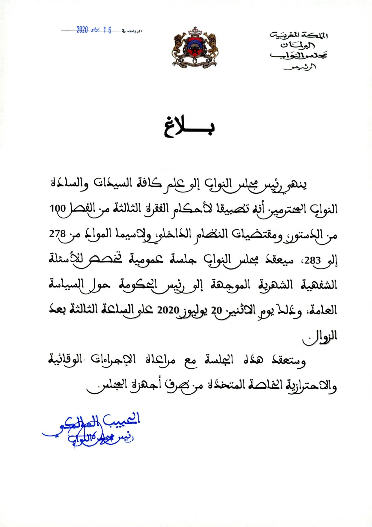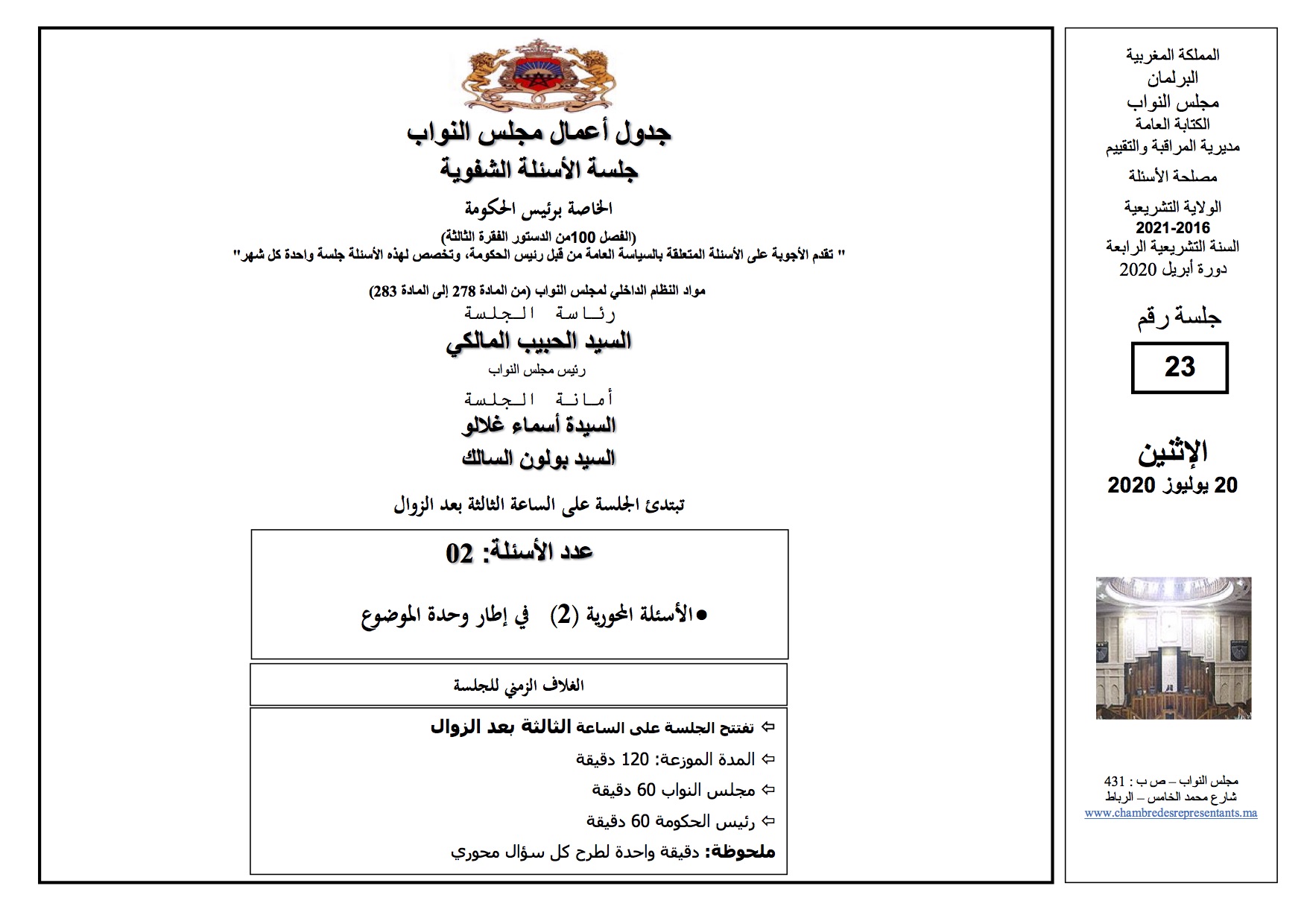 الرئيسية/الرئيسية/بلاغ الجلسة الشهرية الموجهة للسيد رئيس الحكومة الإثنين 20 يوليوز 2020 + جدول الأعمال : الرئيسيةالوطنية بلاغ الجلسة الشهرية الموجهة للسيد رئيس الحكومة الإثنين 20 يوليوز 2020 + جدول الأعمال : 17 يوليو، 20200 أقل من دقيقة فيسبوك تويتر لينكدإن Tumblr بينتيريست Reddit VKontakte Odnoklassniki بوكيت 17 يوليو، 20200 أقل من دقيقة فيسبوك تويتر لينكدإن Tumblr بينتيريست Reddit VKontakte Odnoklassniki بوكيت شاركها فيسبوك تويتر لينكدإن Tumblr بينتيريست Reddit VKontakte Odnoklassniki بوكيت مشاركة عبر البريد طباعة