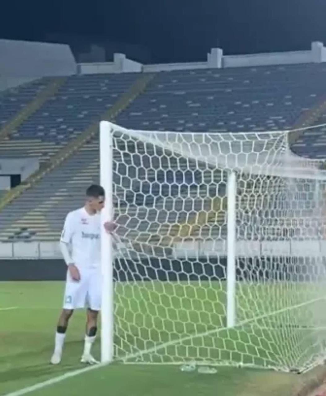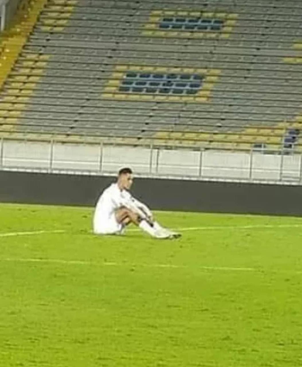 و مباشرة بعد صافرة الحكم توجه اللاعب نحو المرمى التي كانت شاهدة على أهداف تاريخية و حاسمة سجلها اللاعب بها و قبلها قبلت شكر ووداع و بعدها جلس على العشب ينهمر بالدموع بعد أن كان يمني النفس بانتصار يهديه لشعب الأخضر.
