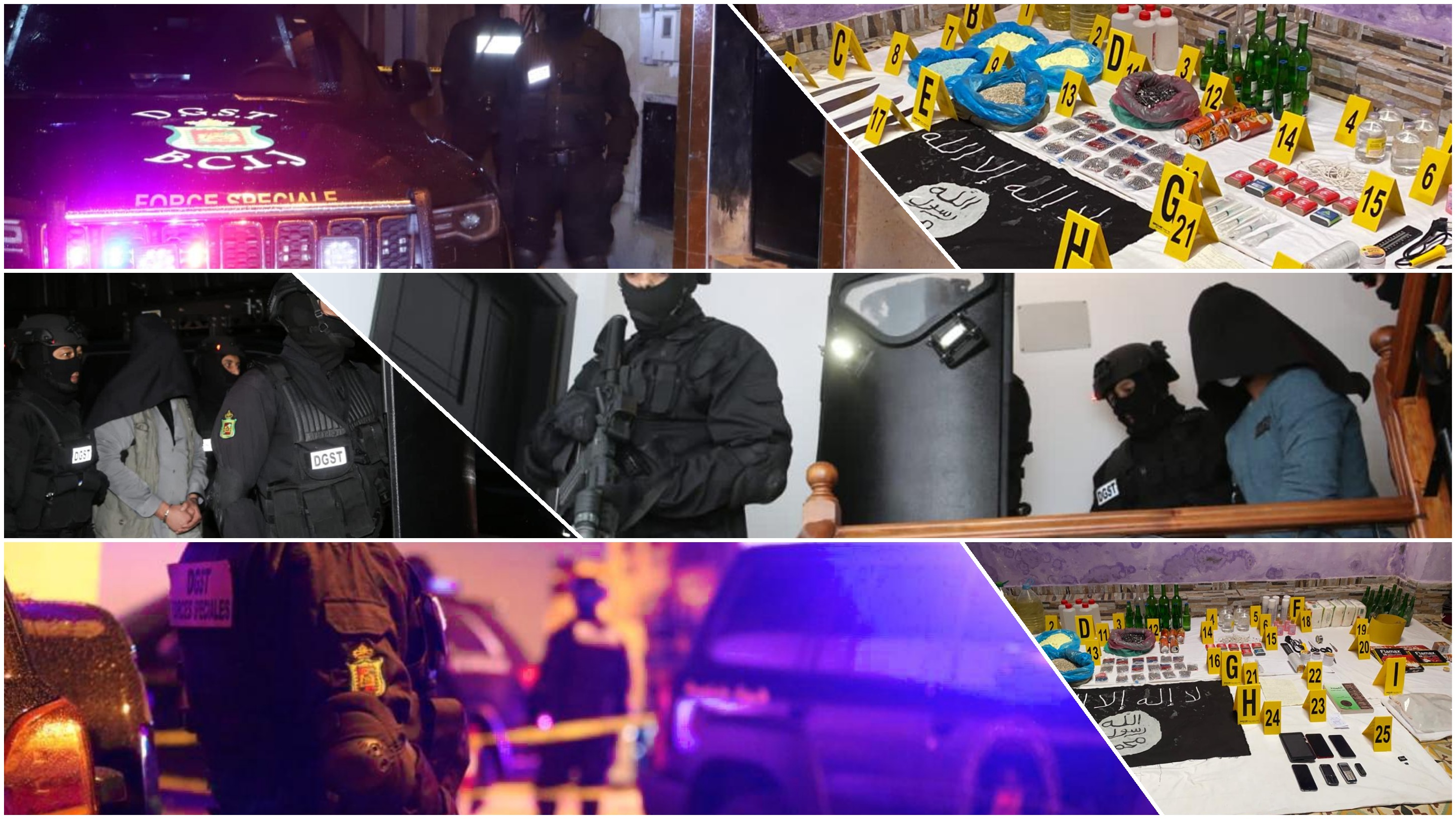 طني أن التدخل الأمني الذي باشرته عناصر القوة الخاصة التابعة لفرقة التدخل السريع، أسفر عن توقيف ثلاثة متطرفين يشتبه في ارتباطهم بهذه الخلية الإرهابية، تتراوح أعمارهم ما بين 21 و38 سنة، وتربط أحدهم علاقة عائلية بمقاتل بصفوف “داعش” بالمنطقة السورية العراقية.