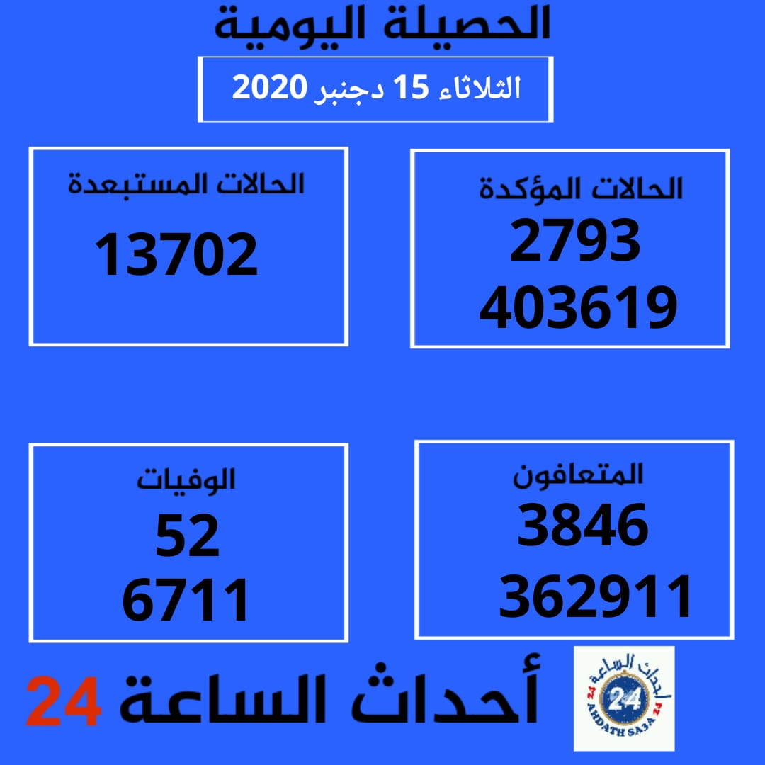 تسجيل 2793 إصابة مؤكدة جديدة بفيروس “كورونا” خلال الـ24 ساعة الماضية،