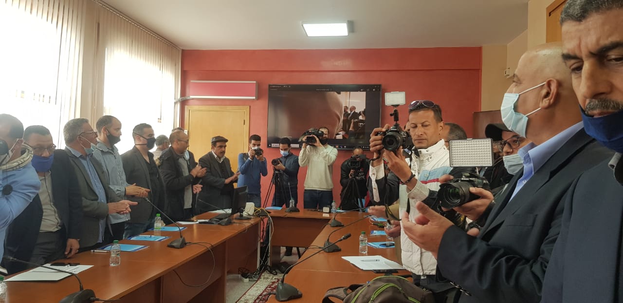 المنضوية تحت لواء المركزية النقابية الاتحاد المغربي للشغل، بحضور عضوي الأمانة العامة، الرفيق نور الدين سليك، المسؤول عن اللجنة الوطنية للتنظيم ل UMT والرفيق محمد الوافي المنسق الوطني للجامعة الوطنية للصحافة والإعلام والاتصال،