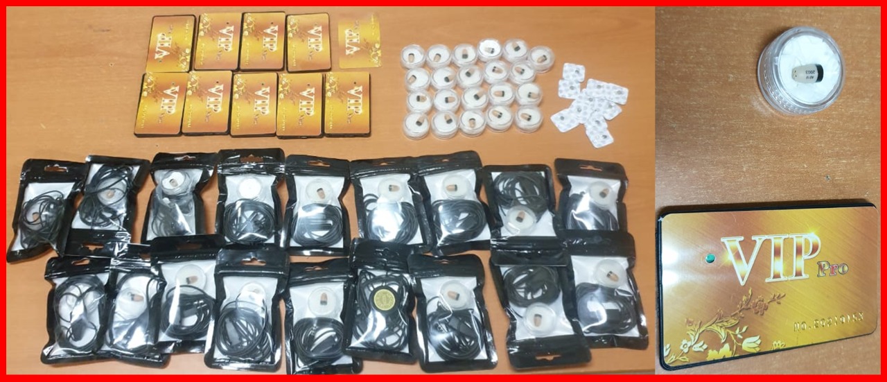 وقد جرى توقيف المشتبه فيهما في حالة تلبس بحيازة وترويج أجهزة لاسلكية مهربة وسماعات دقيقة يشتبه في استخدامها في الغش في الامتحانات المدرسية، وذلك قبل أن تسفر عمليات التفتيش المنجزة في هذه القضية عن حجز معدات إضافية تتمثل في 39 سماعات سلكية ولا سلكية من مختلف الأنواع وتسعة بطائق من نوع (VIP Pro)، علاوة على عشر بطاريات للشحن وهاتفين محمولين ومبلغ مالي يشتبه في كونه من عائدات هذا النشاط الإجرامي.
