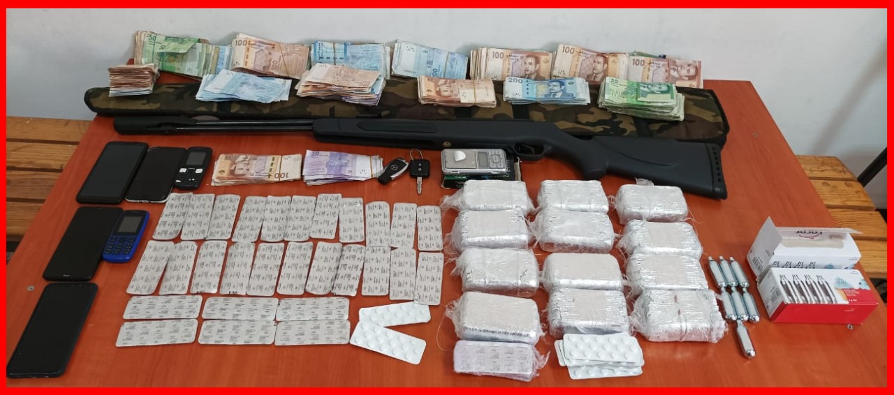 وأضاف المصدر ذاته أن عمليات التفتيش المنجزة بمنزل المشتبه فيه الثالث بمنطقة عين السبع مكنت، أيضا، من حجز كمية من مخدر الشيرا ومادة “الآزوت” المستعمل في التخدير، فضلا عن حجز بندقية ضغط للهواء ومبلغ مالي من متحصلات ترويج المخدرات والمؤثرات العقلية.