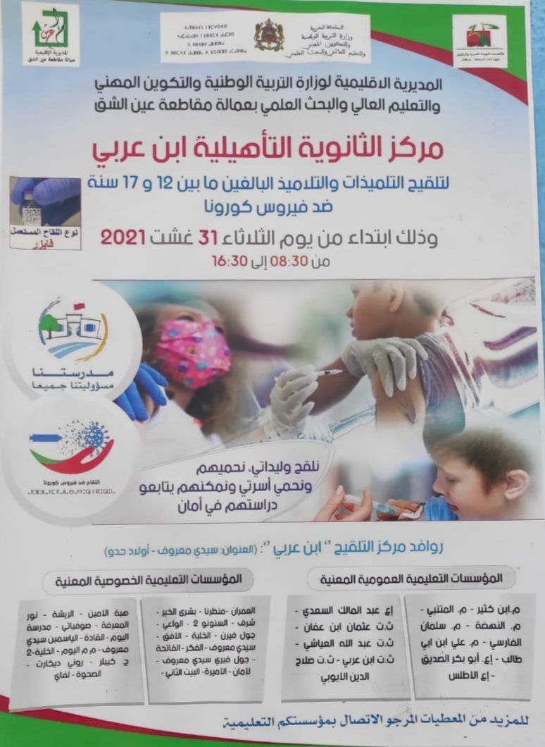 وترمي عملية تلقيح الأطفال والشباب المتمدرسين الى إنجاح الدخول المدرسي وحتى يصبح حضوريا بدل التعليم عن بعد.