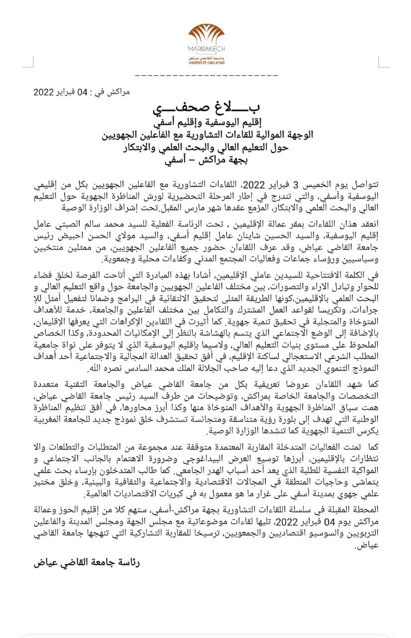 تستمر اللقاءات التشاورية مع الفاعلين الجهويين وجامعة القاضي عياض