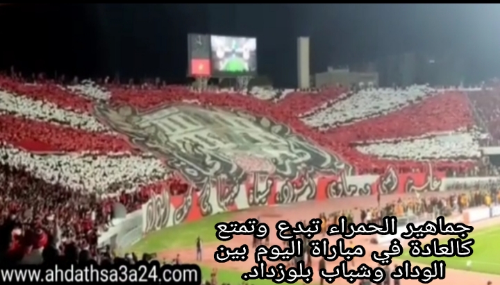 جماهير الحمراء تبدع وتمتع كالعادة في مباراة اليوم بين الوداد وشباب بلوزداد. احداث الساعة 24 https://youtu.be/GwlMHNIYz0Q