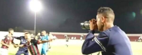 نجم فريق العساكر سجل هدفا رائعا من تسديدة بعيدة المدى في فوز فريقه على شباب المحمدية وقرر رضا الاحتفال بطريقة مثيرة للجدل حيث تحصل على كاميرا من أحد المصورين والتقط صورة لزملائه لكنه فوجئ بقرار الحكم يمنحه إنذارا بسبب هذه الاحتفالية!!