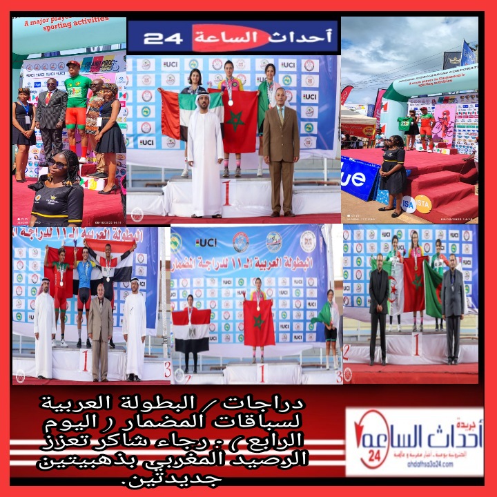 عزز ت ، بطلة العرب وإفريقيا، رجاء شاكر رصيد المنتخب المغربي للدراجات بذهبيتين جديدتين ، فيما كسب مواطنها محمد نجيب صنبولي ميدالية فضية ضمن منافسات اليوم الرابع وما قبل الأخير من النسخة الـ11 للبطولة العربية للمضمار ، المقامة بالقاهرة من 5 إلى 9 من الشهر الجاري، والمعاملة من طرف الاتحاد الدولي للعبة.