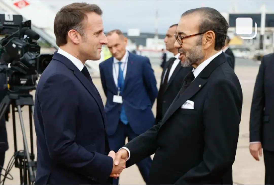*”أجرى صاحب الجلالة الملك محمد السادس، نصره الله، اليوم الاثنين بالقصر الملكي بالرباط، مباحثات مع رئيس الجمهورية الفرنسية فخامة السيد إيمانويل ماكرون، الذي يقوم بزيارة دولة للمغرب من 28 إلى 30 أكتوبر، بدعوة من جلالة الملك*.
